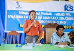 Katibu tawala wilaya ya Pangani ndg, Ester Gama, akielekeza jambo, wakati wa ufunguzi wa mdahalo kwaajili ya kujadili Mradi wa Uwajibikaji Jamii na Mamlaka Zinazohu...