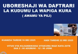 uboreshaji wa Daftari la kudumu la Wapiga Kura awamu ya pili mchakato utaanza tarehe 16-22 mei 2025 katika Kata zote.